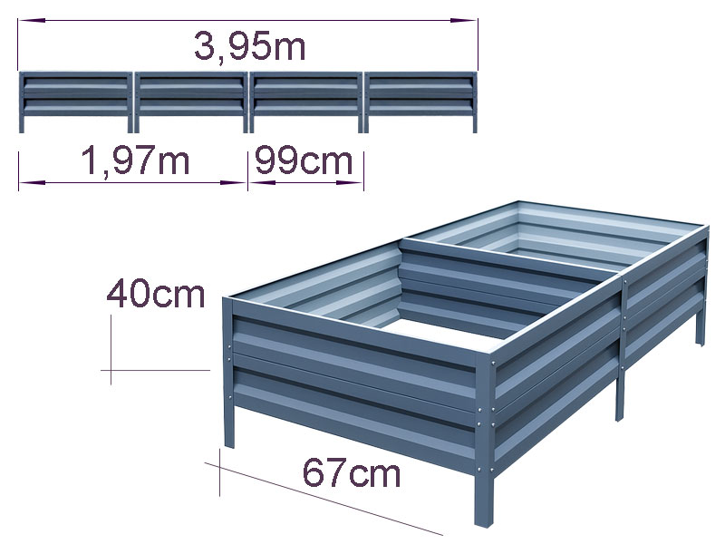 Cinkota dobju apmale izgatavota no izturīga cinkota metāla un paredzēta, lai sakārtoti noformētu dārza dobes un stādījumus. Pastiprinātās paneles un uzticamā savienojumu sistēma nodrošina stabilu ģeometriju un konstrukcijas stiprību daudzus gadus.