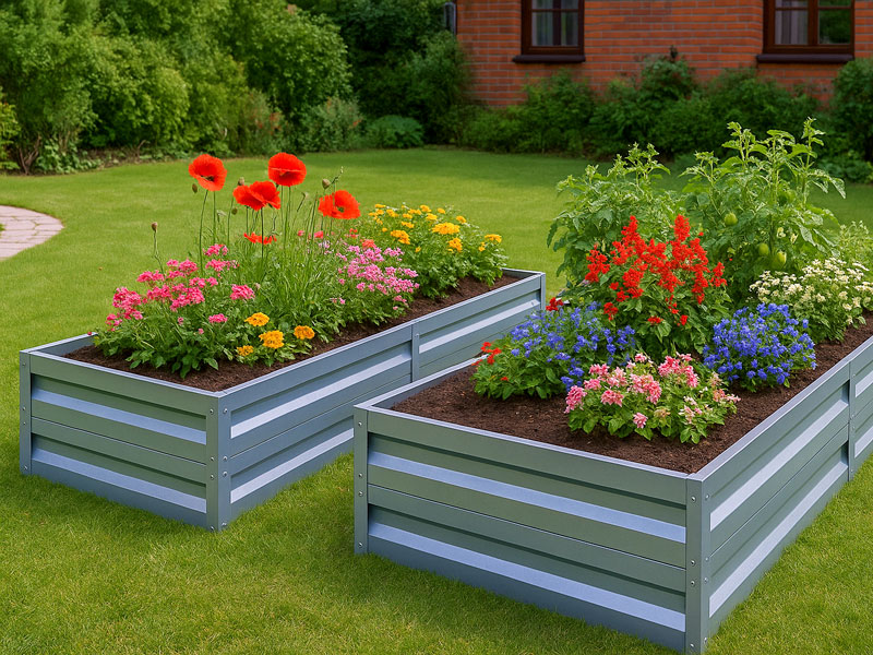 • Mitruma saglabāšana — cinkotās dobju apmales notur mitrumu, samazinot laistīšanas biežumu.