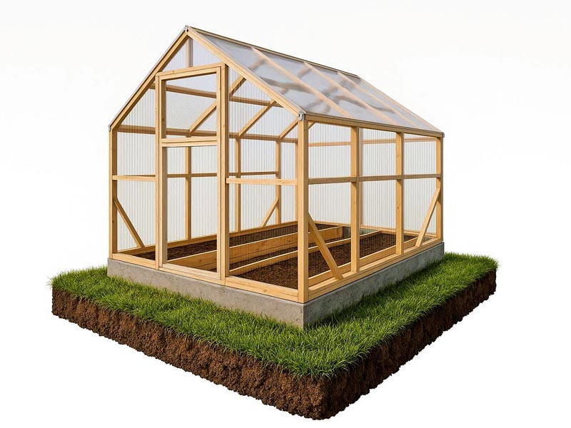Izturīga impregnēta koka siltumnīcas konstrukcija