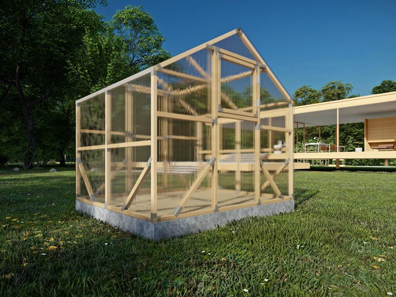 Impregnēta koka siltumnīca CASA ir veidota no augstas kvalitātes 45×45 mm Zviedrijas priedes, apstrādātas ar caurspīdīgu koksnes impregnēšanas līdzekli. Šī apstrāde aizsargā konstrukciju pret mitrumu un bioloģisko bojājumu, nodrošinot ilgstošu izturību un saglabājot dabīgo koksnes izskatu.