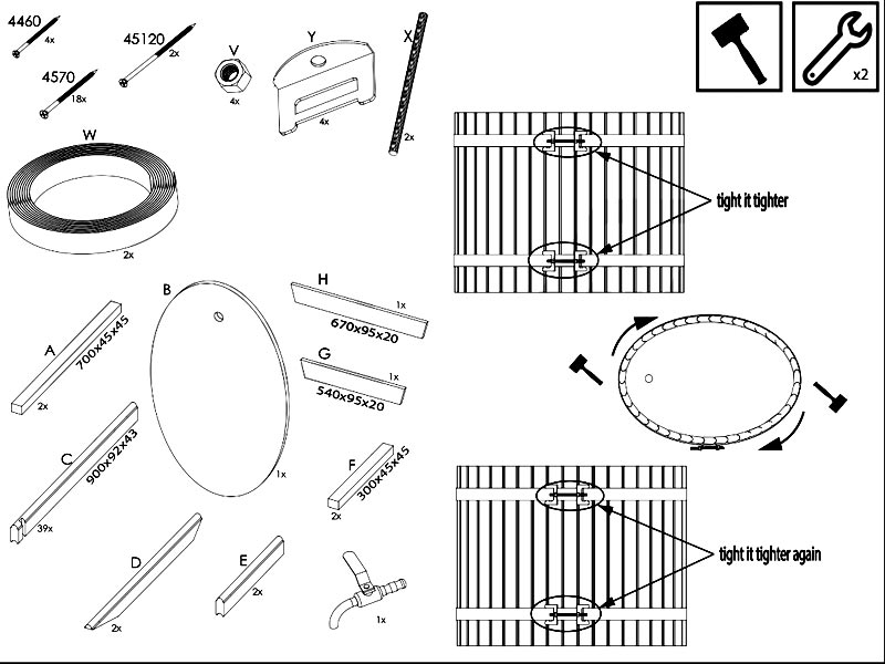 Садовая купель-бочка 120 см — комплект для самостоятельной сборки