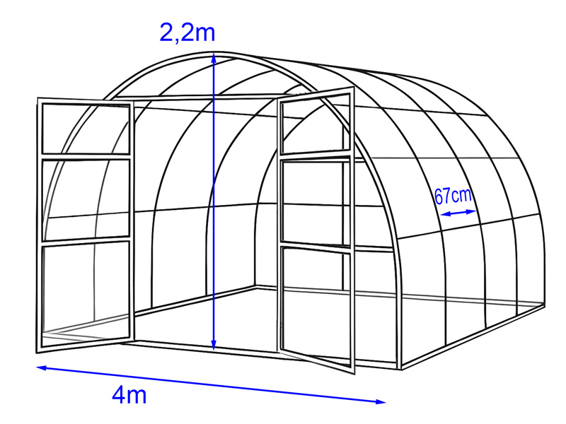 1 × КАРКАС ТЕПЛИЦЫ 'GARDEN WIDE 4M' (базовый комплект 4x4м)
